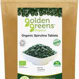120 tablets Spirulina is a blue-green algae that is over 3 billion years old, and one of the most nutritious superfoods on the planet Key facts: Packed with B vitamins, Iron, Calcium, Zinc 56% Vegan Protein with 18 amino acids Low Fat, Low Chloresterol Gluten Free, Lactose Free Suitable for Vegetarians, Vegans Non-GMO and 100% natural Certified Organic by the Soil Association Golden Greens Organic Spirulina is cultivated in special fresh water pools to maintain a pure, organic environment. Once harvested it is hand-washed and gently dried before being milled into fine powder