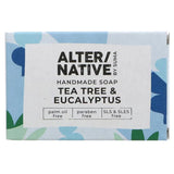 Tea tree renowned for its superb antiseptic qualities, and eucalyptus for its antibacterial action combine to create a wonderfully aromatic soap for deep cleansing, with added nettle leaf to soothe tired skin. Handmade, 100% natural, palm free soap. Made with essential oils - Our cruelty-free body care range is created using the natural powers of plants that love your skin and respect our planet. ALTER/NATIVE by Suma. There's more than one way to fight dirty.