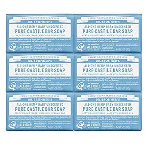 With no added fragrance and double the olive oil, our Baby Unscented Pure-Castile Bar Soap is good for sensitive skin & babies too (though not tear-free!). Dr. Bronner's Bar Soap is made with certified fair trade ingredients and organic hemp oil for a soft, smooth lather that won't dry your skin. 100% biodegradable in a 100% post-consumer recycled wrapper.