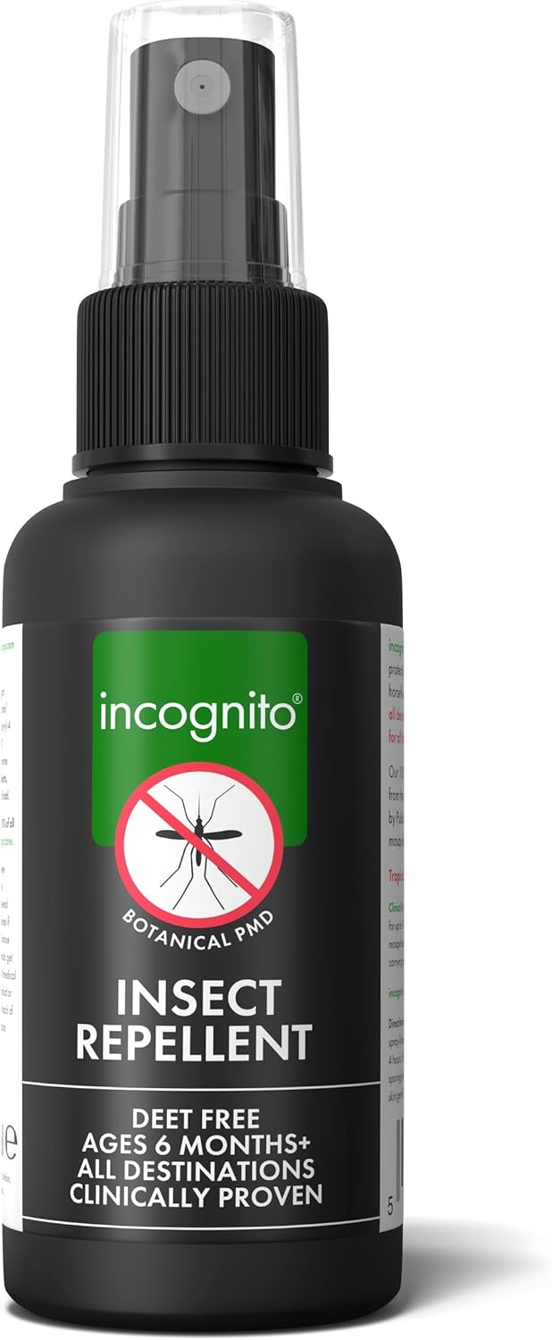 Incognito maximum strength spray provides protection against mosquitoes, midges, sandfies, horseflies, ticks and many more insects.