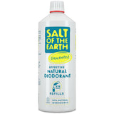 Unscented Natural Deodorant Spray Refill Our unisex Unscented Natural Deodorant Refill offers long lasting, effective protection from body odour and is made from 100% natural ingredients. How It Works For centuries, natural mineral salts have been used to prevent body odour. One of these natural salts, potassium alum, is the main active ingredient in Salt of the Earth's Unscented Natural Deodorant. Potassium alum creates an invisible antibacterial layer on the skin's surface that inhibits the growth of bacteria, preventing body odour. The result is effective, long lasting protection that allows your skin to breathe. Eco-Friendly Our 1ltr Unscented Natural Deodorant Spray Refill can refill 10 x standard Salt of the Earth Deodorant Sprays or 20 x Travel Sprays, which reduces plastic waste and your carbon footprint. Our Vegan Credentials The entire Salt of the Earth range is approved by both the Vegan and Vegetarian Societies, and we are Leaping Bunny approved. The Leaping Bunny standard represents a commitment to avoid animal testing at all stages of product development, with our ingredient suppliers making the same pledge. The result is that you can be assured of a product guaranteed to be 100% free of all new animal testing. - 100% Natural Deodorant - Free from Aluminium Chlorohydrate and synthetic chemicals, the Unscented Natural Deodorant Refill is 100% natural, gentle on your skin and made from a mix of natural mineral salts and aloe vera. Certified COSMOS Natural. - Long Lasting Protection - Provides long-lasting and effective protection from body odour, leaving you feeling fresh, confident and odour free for longer. - Fragrance Free - Salt of the Earth Unscented Natural Deodorants are fresh, natural and free from fragrance. - No White Marks - Salt of the Earth Spray Deodorants are carefully formulated to ensure that they won't leave embarrassing white marks on your clothes. - Save Plastic - One 1Litre Spray Refill bottle uses 70% less plastic than the equivalent 10 Salt of the Earth 100ml Sprays. - Vegan Friendly - 100% Vegan and approved by both the Vegan Society and Vegetarian Society. - Leaping Bunny Approved - The Leaping Bunny standard represents a commitment to avoid animal testing at all stages of product development, with our ingredient suppliers making the same pledge. The result is that you can be assured of a product guaranteed to be 100% free of all new animal testing. - Certified Cosmos Approved - Salt of the Earth Unscented Natural Deodorant Spray Refill is certified to the COSMOS natural standard. This means no GM ingredients, no animal testing and no synthetic chemicals; just 100% natural ingredients.