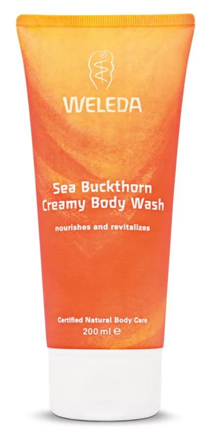 Weleda Sea Buckthorn Creamy Body Wash. If you could take sunshine into the shower, it would smell and feel like this. Sea buckthorn fruits are pressed for their golden flesh and seed oil to pamper your skin. Oranges, mandarins and grapefruit lend their zestful fragrance while the cream gently cleans your skin with mild sugar based cleansers. Step out sun-kissed, summer-loved and fresh all over.