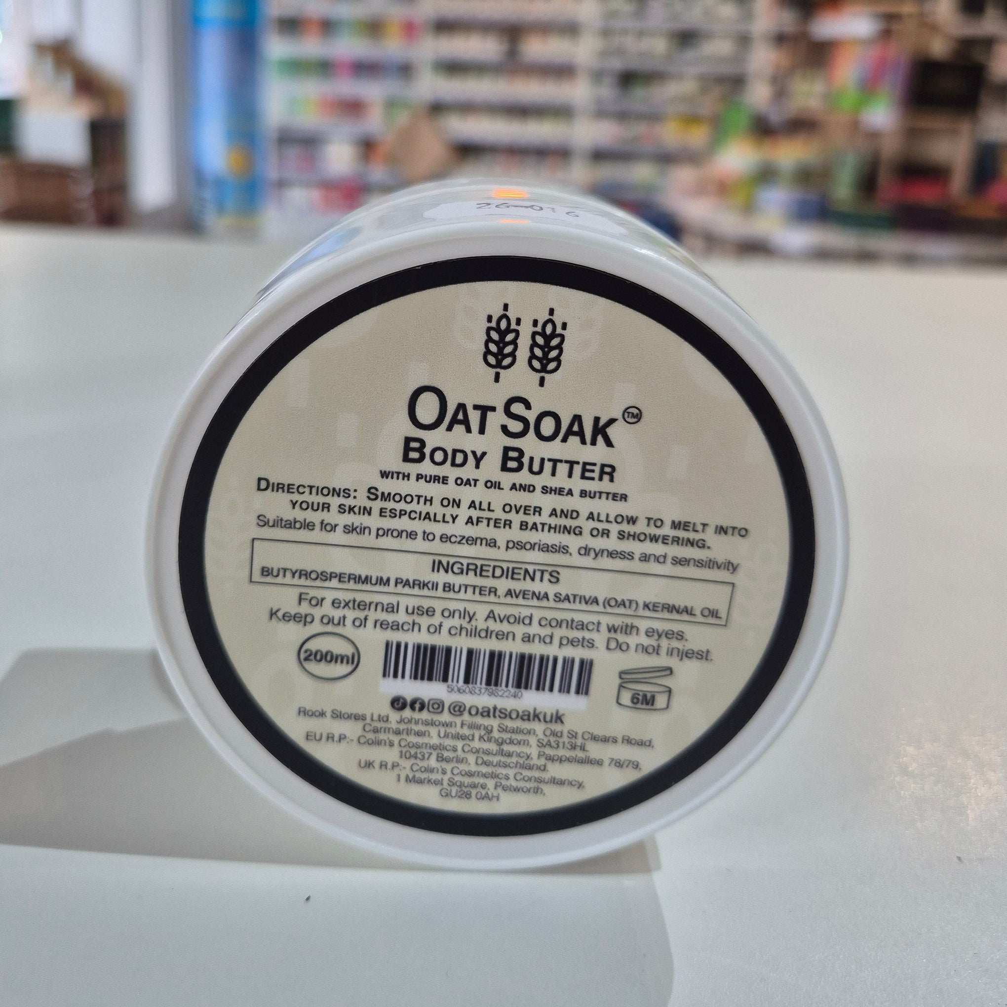 OatSoak Body Butter 200ml Natural Oat Oil Moisturiser
