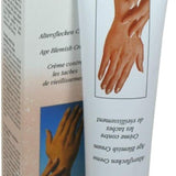 Age Blemish Cream - Natural Age Spot Treatment Fade away age spots and blemishes Suitable for hands and face Gentle and effective Natural ingredients Even the best dietary and exercise regimes, designed to keep our body and skin youthful, can be sabotaged by the aging effect of skin blemishes and liver spots. A natural reduction in the body's metabolism as we grow older allows waste in the skin to linger and eventually interact with oxygen to cause these tell-tale signs emerge. Now Medosan, swiss based company have developed a natural based remedy that has combined herbs and an active agent from Chinese medicine that prevents the oxidation occuring. Natural and safe for all areas Medosan will fade away age spots and blemishes that can spoil what the diet and exercise have achieved. With the natural active ingredient Asafoetida, long known in Chinese herbology, daily massage into the hands and face will cause blemishes to disappear. 100ml tube