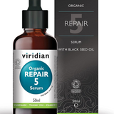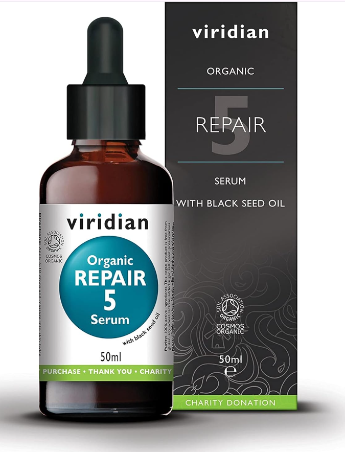 Organic Repair 5 serum is an award-winning skincare product featuring a blend of five well-researched natural oils – black seed, flaxseed, lavender, chamomile and safflower. When tested, 98% of participants saw significant improvements