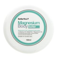 Magnesium rich body butter containing 15% BetterYou MagnesiumOil, nourishing shea butter, cocoa butter, coconut oil and vitamin E