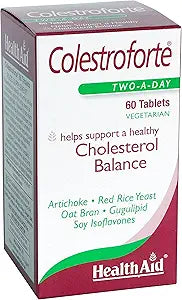 Cholesterol is a naturally occurring fat like substance, which the body need to function optimally. If too much cholesterol reaches the bloodstream, the excess may be deposited in arteries, where it contributes to the narrowing and blockages that cause heart problems. HealthAid Cholestroforte contains key nutrients, amino acids and herbs to help maintain healthy cholesterol balance, blood circulation and a healthy heart.