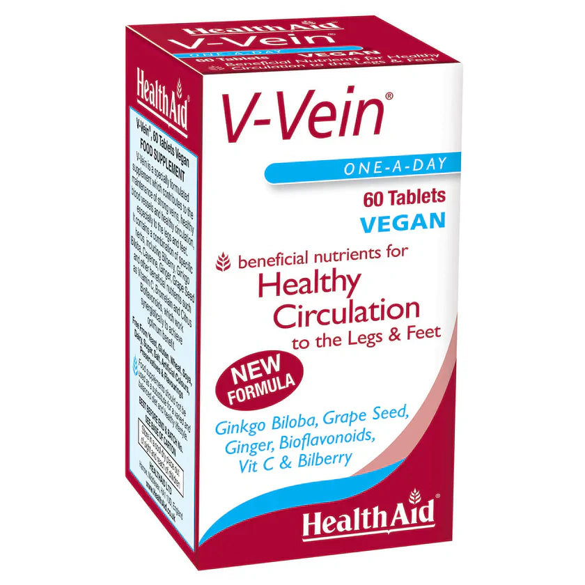 V-vein is a specially formulated supplement which contributes to the maintenance of strong veins, healthy blood vesels and circulation, especially to the legs and feet. It contains a combination of specific herbs, including Bilberry, Bromelain, Ginkgo Biloba, Cayenne, Ginger, Grape Seed, and other beneficial nutrients such as Vitamin C and Citrus Bioflavonoids, which work synergistically to achieve optimum benefit
