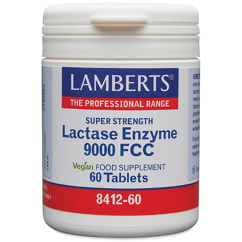 Lactase is a digestive enzyme required for the breakdown of the milk sugar lactose. Lactase should be produced in the small intestines, however if little or no lactase is produced or if production is impaired, undigested lactose moves into the colon where it is fermented and hydrogen, carbon dioxide and organic acids are produced often resulting in cramps, wind and diarrhoea. This intolerance to lactose is not life threatening however, it can make patients feel very unwell and although eliminating milk-based products is one solution, it can prove impractical as well as resulting in a very restricted diet. Lamberts® Super Strength Lactase Complex is equivalent to 9000 FCC (Food Chemical Codex)*, making it one of the highest strength and best value products available to practitioners with no compromise on the quality.