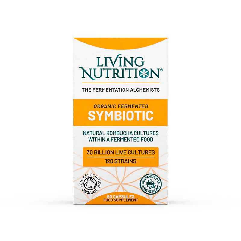 Living Nutrition Organic Fermented Symbiotic is a probiotic containing fermented organic sprouted soybeans which helps to naturally support digestive health and nurture a balanced gut microbiome. It provides over 120 strains of beneficial microbes to encourage microbial diversity.