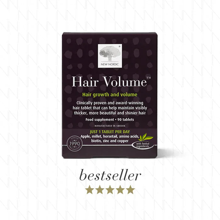 Hair Volume™ is a clinically proven tablet that gives visibly thicker, more beautiful, shinier hair. It contains apple extract in combination with millet, horsetail, amino acids, biotin, zinc and copper. It channels nutrients to the scalp and hair follicles, where hair is formed. The zinc and biotin help maintain normal hair, skin and nails. Copper contributes to maintaining the normal pigmentation of the hair.