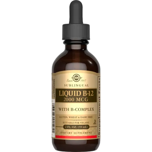 Liquid Vitamin B12 2000 µg with B-Complex is a naturally occurring B-Complex vitamin that promotes the health of the nervous system and healthy blood cell formation, and supports energy metabolism.